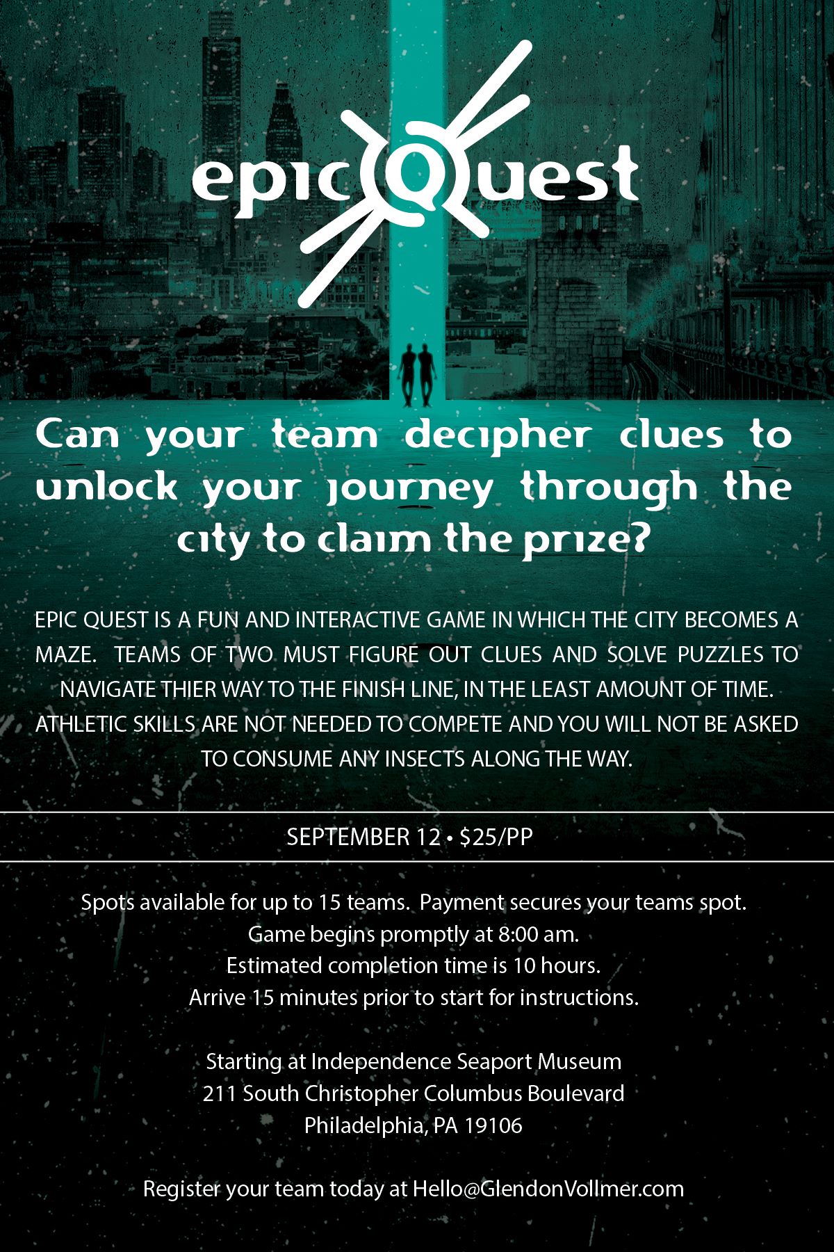 In the first-ever EpicQuest, teams of two took to the streets of Philadelphia in a high-stakes race of wits and discovery. Over six thrilling hours, players uncovered hidden puzzles and interactive games tucked into the fabric of the city, from historic landmarks to unexpected alley ways. Each solved challenge unraveled more of an overarching narrative, drawing teams deeper into an unfolding urban adventure. With every clue, the competition intensified, as teams pushed to outsmart their rivals and complete the quest first.